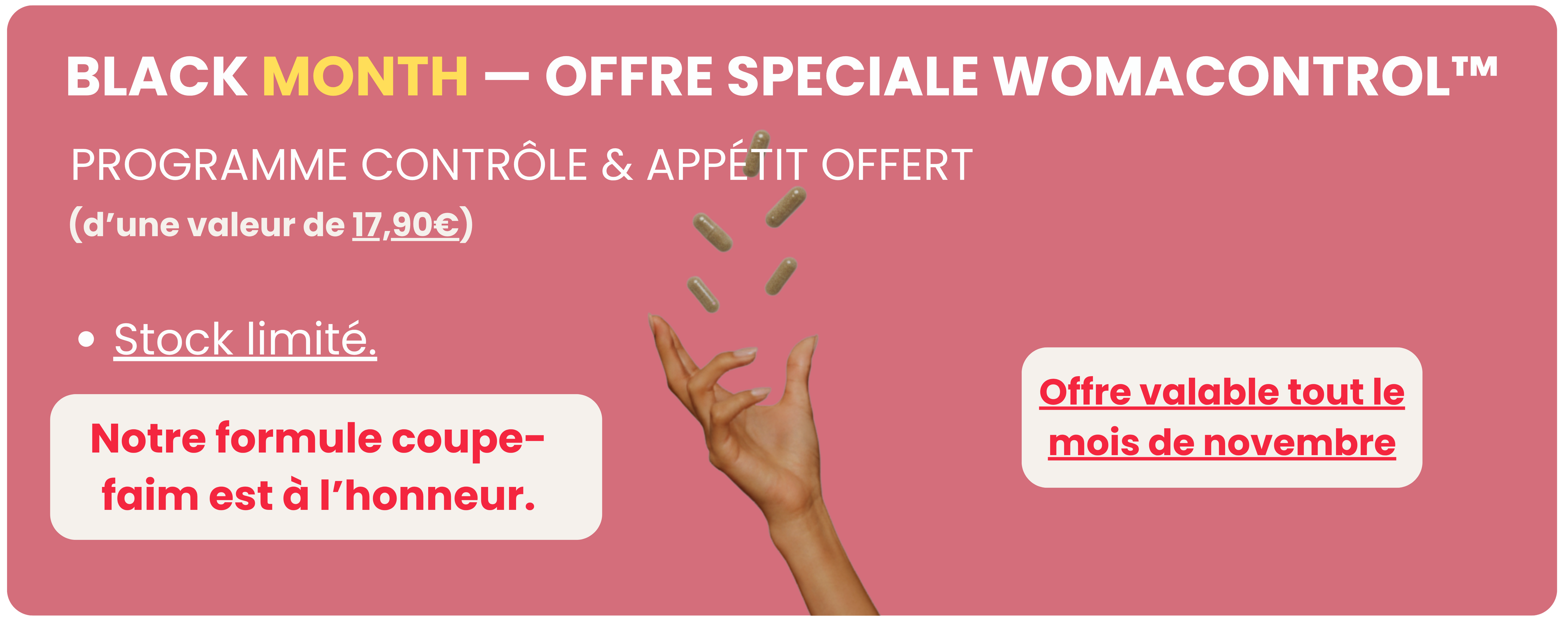 WomaControl agit comme un soutien naturel pour celles qui veulent retrouver le contrôle de leur appétit, sans frustration ni régime extrême.